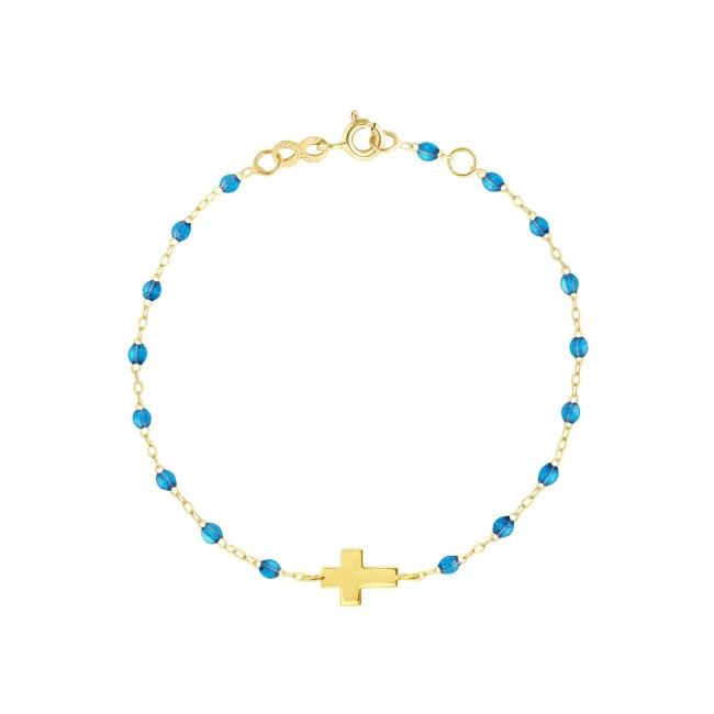 Gigi Clozeau Croix bracelet in yellow gold and azure resin, size 17cm