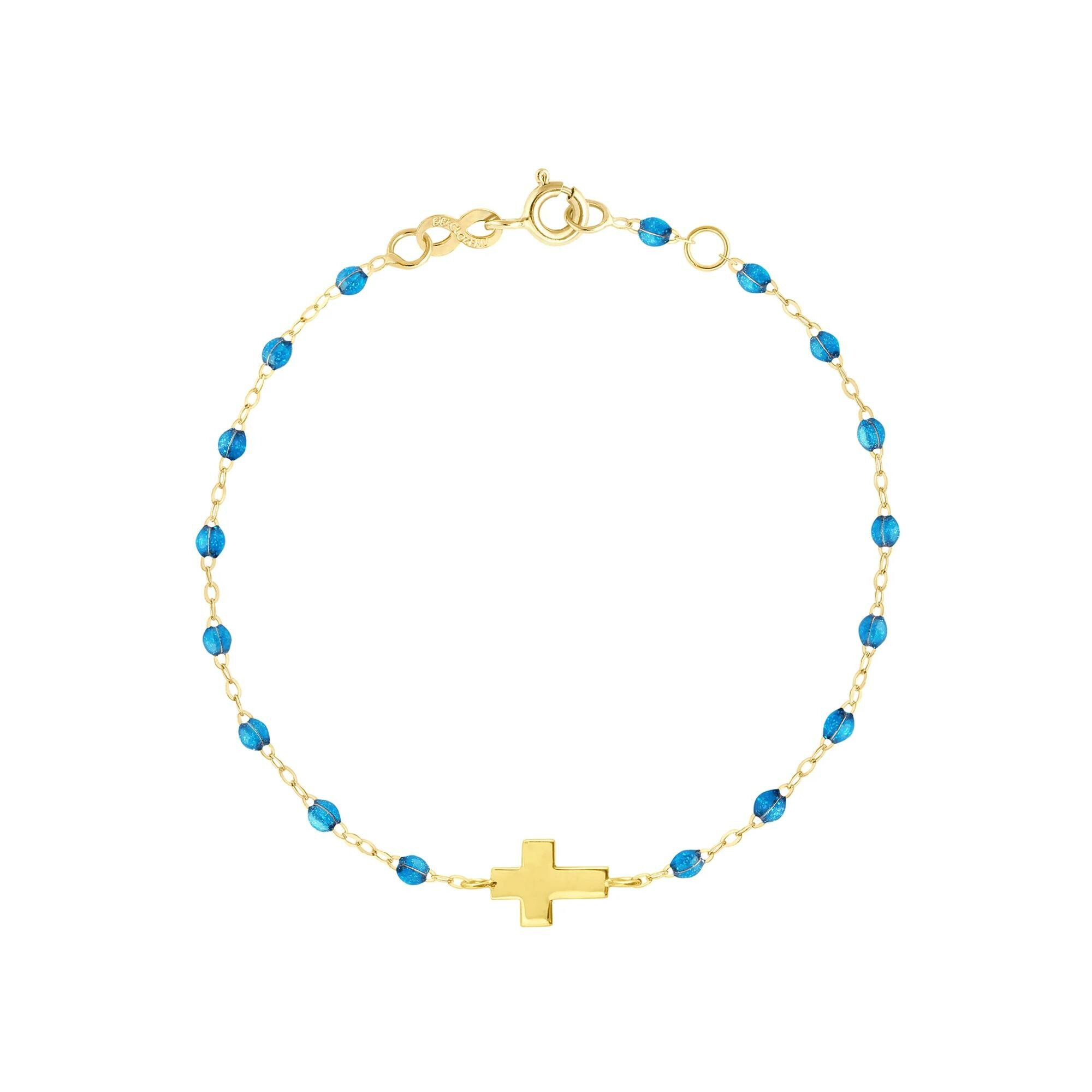 Gigi Clozeau Croix bracelet in yellow gold and azure resin, size 17cm