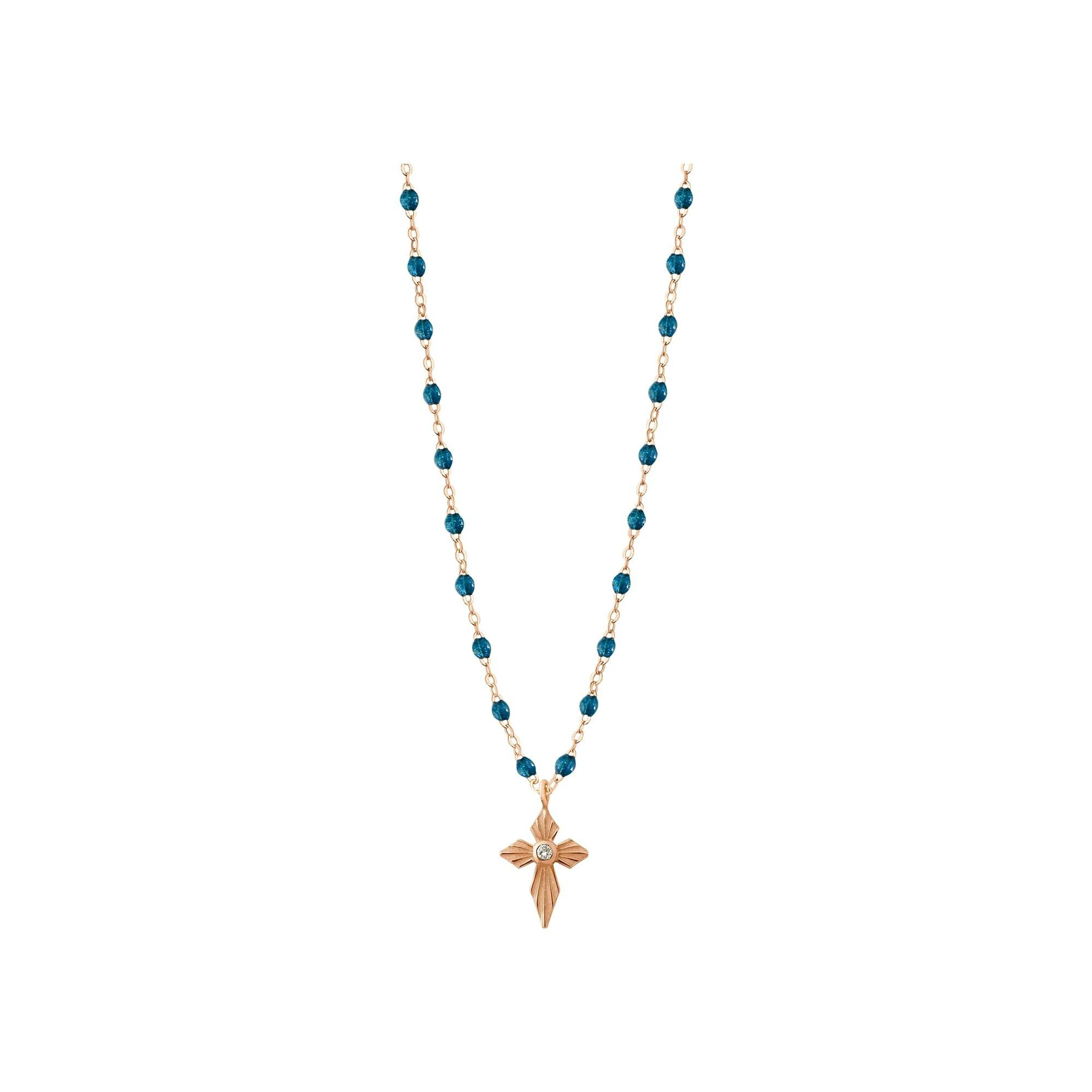 Gigi Clozeau Croix necklace, pink gold, jungle resin and diamonds, size 42cm