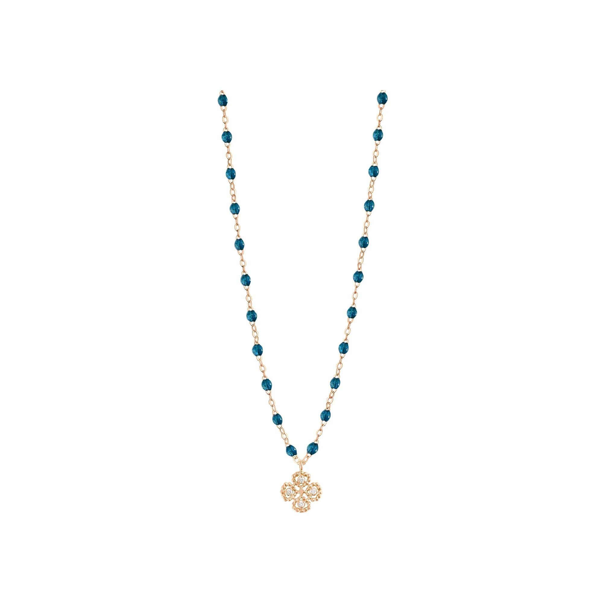 Gigi Clozeau Lucky Trèfle necklace, pink gold, jungle resin and diamonds, size 42cm