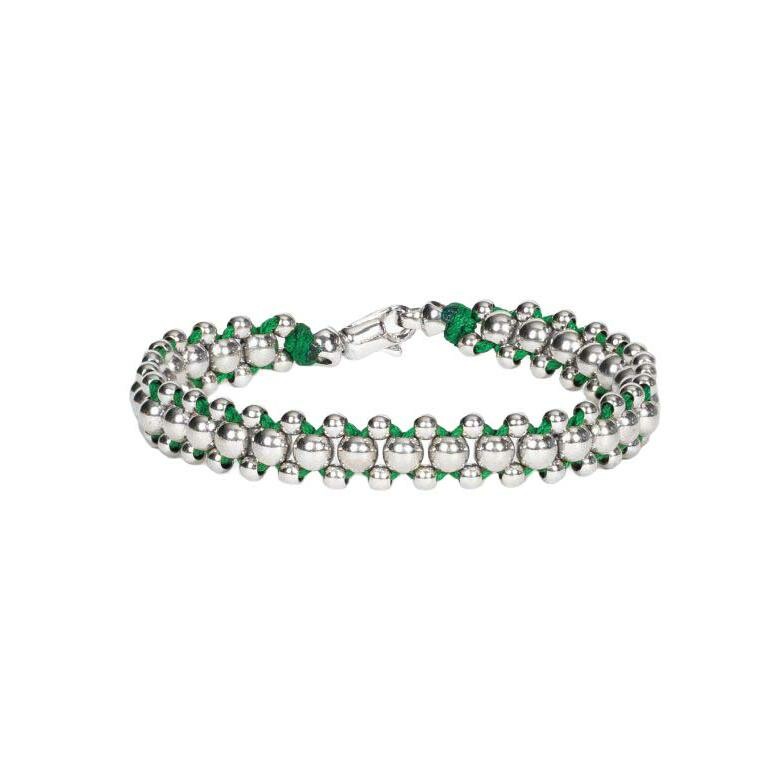 HARRICANA bracelet in rhodium-plated silver, green, large model