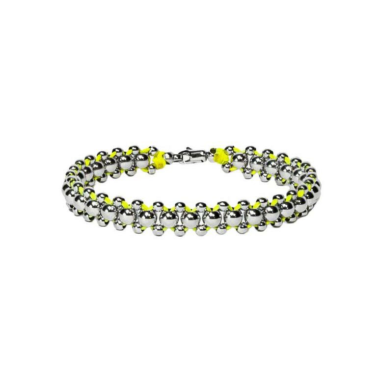 HARRICANA bracelet in rhodium-plated silver, Neon yellow, large model
