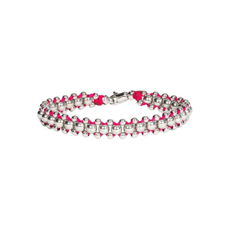 HARRICANA bracelet in rhodium-plated silver, pink, small model