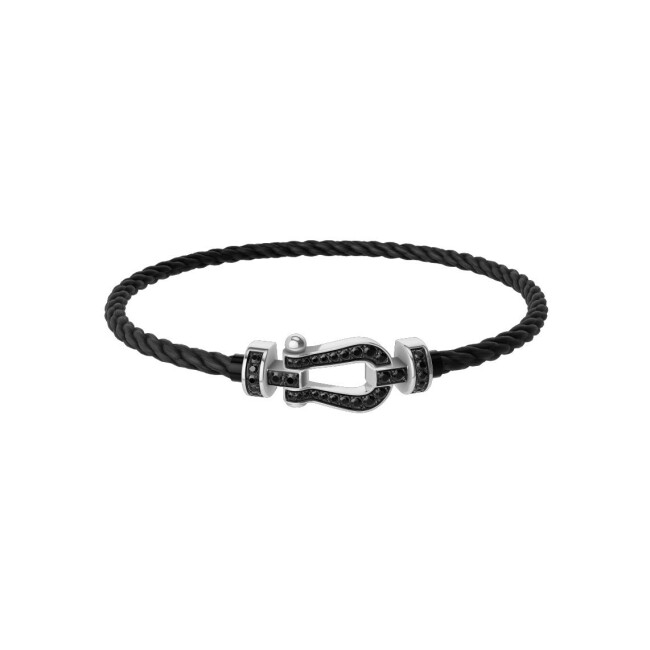 Force 10 Bracelet FRED Force 10 Moyen Modèle en or blanc et diamants noirs, câble en corderie noir